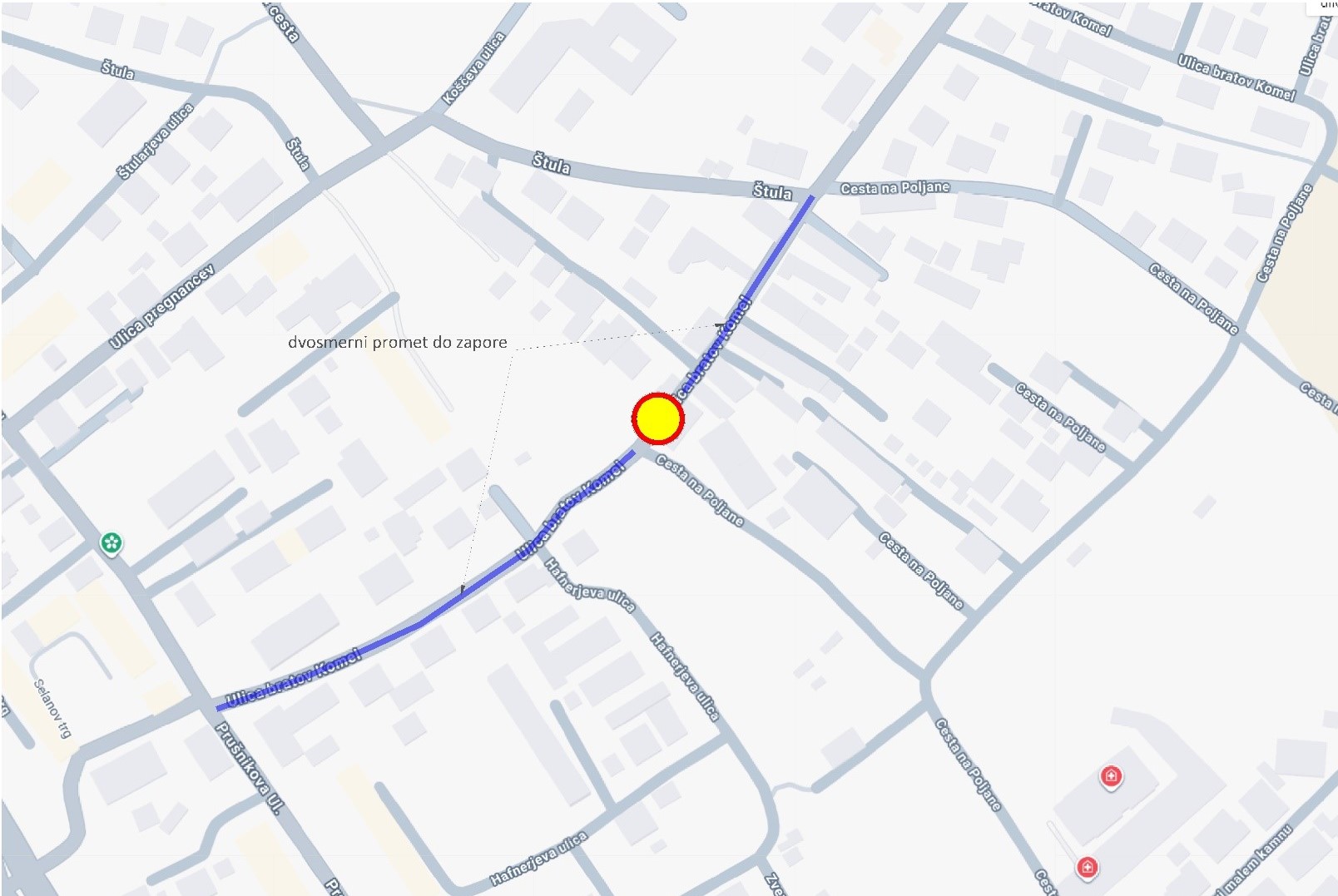Zaradi ukinitve vodovodnega priključka bo v soboto, 27. septembra 2025, za ves promet zaprta Ulica bratov Komel pri hišni številki 16.