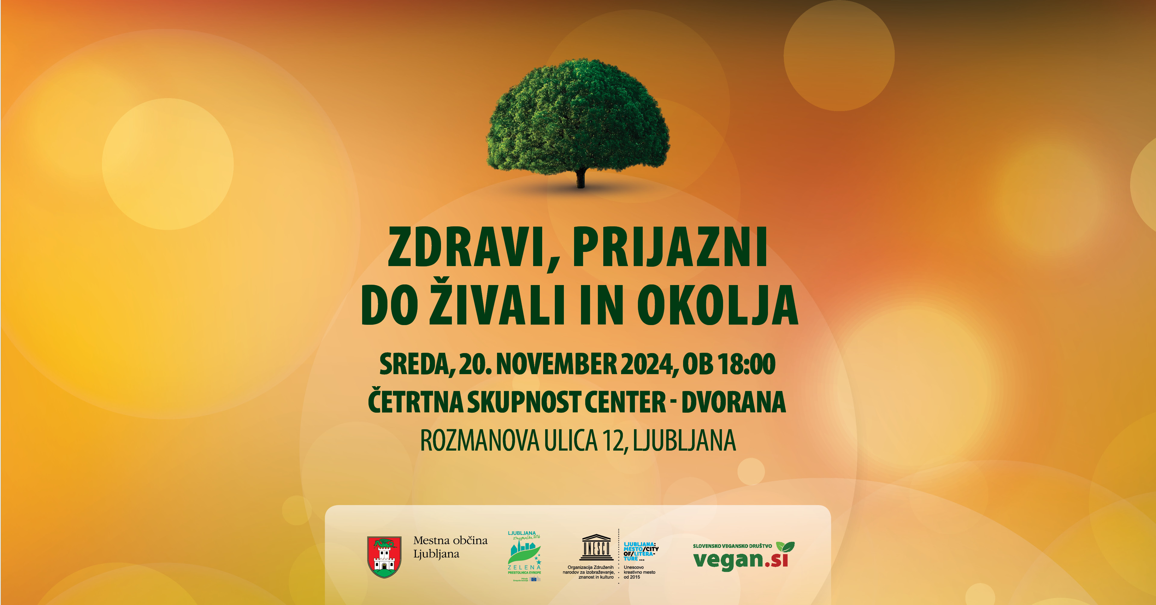 Mestna občina Ljubljana v sodelovanju z Slovenskim veganskim društvom organizira predavanje na temo: Zdravi, prijazni do živali in okolja.