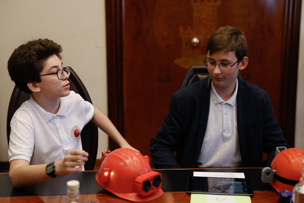 Tobija Holcar in Svit Bobek sta zasnovala pametno čelado, ki nudi zaščito pri delu v nevarnih okoljih, kot so jame in rudniki. Čelada se samodejno prilagaja okolju, z inteligentno osvetlitvijo izboljšuje vidljivost glede na bližino predmetov, vgrajeni senzorji pa zaznavajo tudi nevarne pline, kar povečuje varnost uporabnika. Med gibanjem po prostoru čelada hkrati meri razdalje in omogoča izdelavo 3D virtualnega modela jam ali podzemnih prostorov. Tako ne deluje le kot zaščita, temveč kot pametno orodje za varno in digitalno raziskovanje.