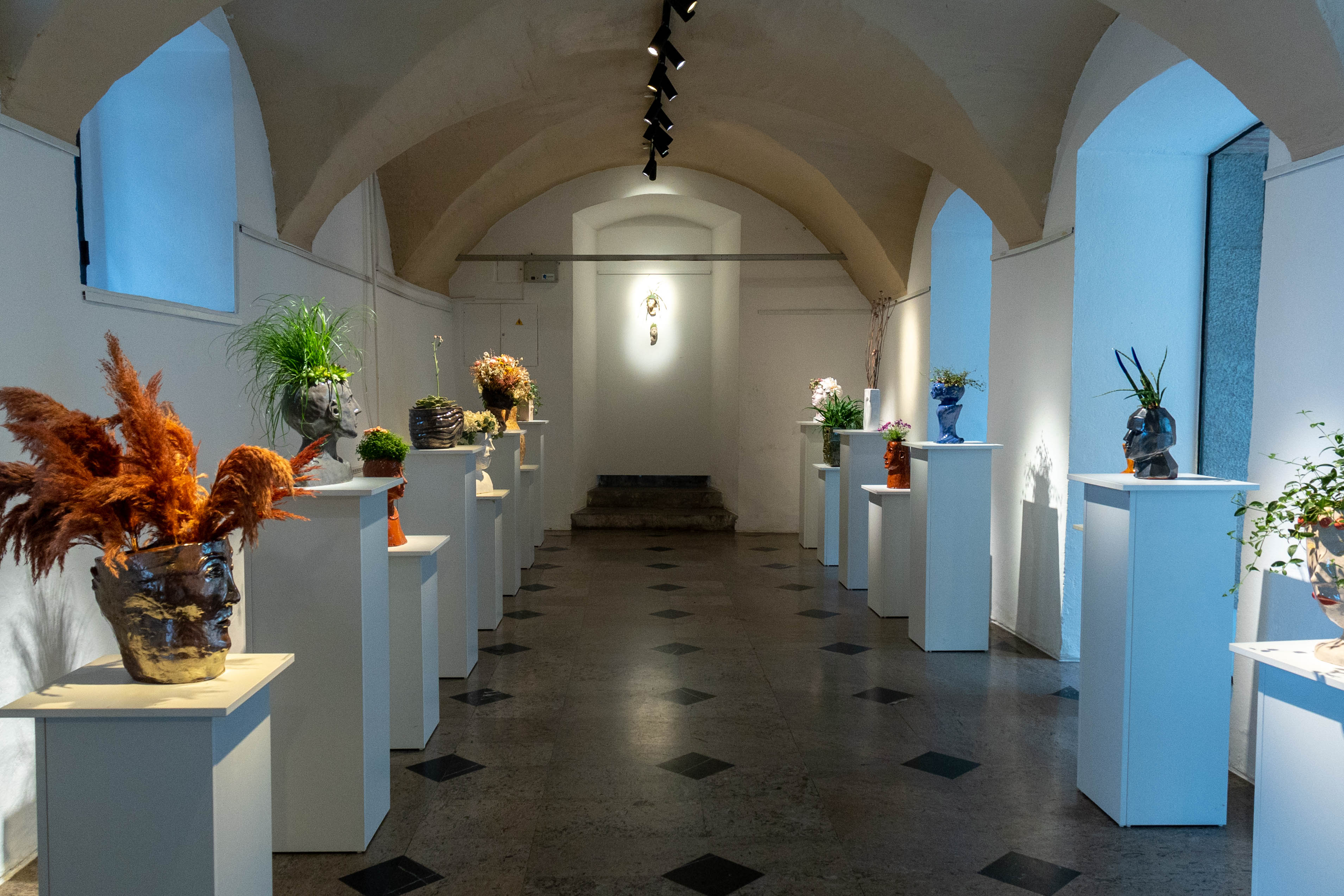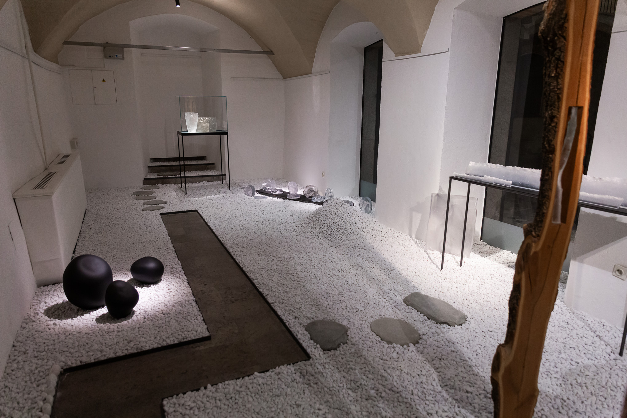 Stekleni atrij je zaprt razstavni prostor opremljen z namensko osvetlitvijo primerno za razstave in galerijskimi šinami za obešanje slik. Primeren je za pripravo vseh vrst slikarskih, kiparskih, fotografskih, arhitekturnih in multimedijskih razstav manjšega obsega.