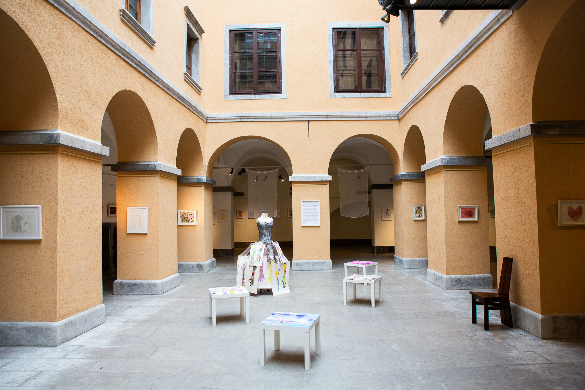 Zgodovinski atrij je zaprt razstavni prostor v Mestni hiši. Pod arkadami so nameščene galerijske šine za obešanje slik, urejena je tudi osvetlitev, primerna za razstave. Atrij je primeren za večje razstave, katerih eksponati so deloma odporni na vremenske vplive ter vlago (fotografske, kiparske, arhitekturne razstave ter razstave keramične izdelkov ipd.).