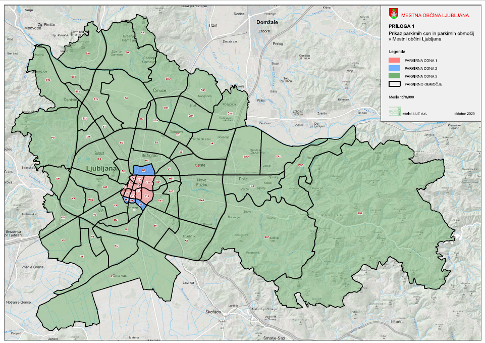 Shema parkirnih con na območju Mestne občine Ljubljana