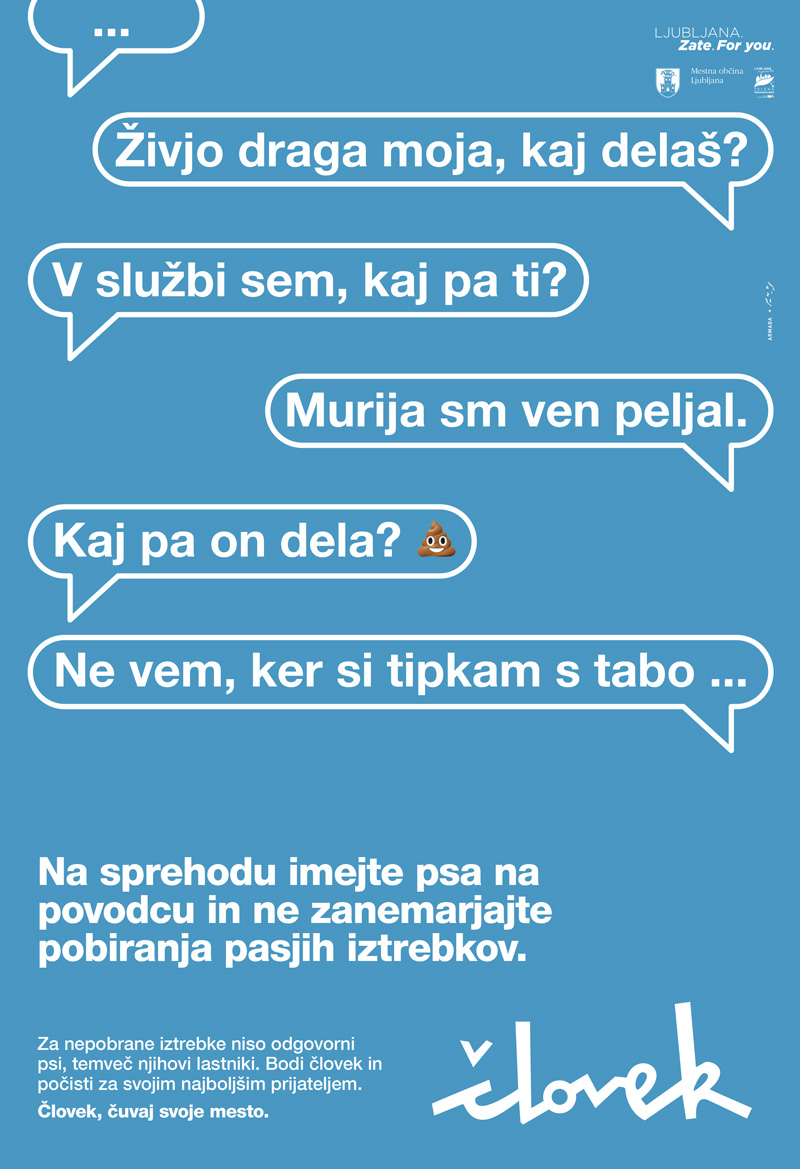 V Ljubljani si želimo, da bi se vsi lastniki psov obnašali odgovorno in spoštljivo do okolja. Kampanja zato redno opozarja na pomen pobiranja pasjih iztrebkov, uporabo povodcev in skrb za čiste zelene površine. Dvakrat letno v različnih četrtnih skupnostih delimo biorazgradljive vrečke za pasje iztrebke v sklopu preventivne akcije, pri kateri ozaveščamo lastnike psov o pobiranju pasjih iztrebkov ter skupaj z Mestnim inšpektoratom in Mestnim redarstvom opozarjamo, ter da je potrebno pse voditi na povodcih.