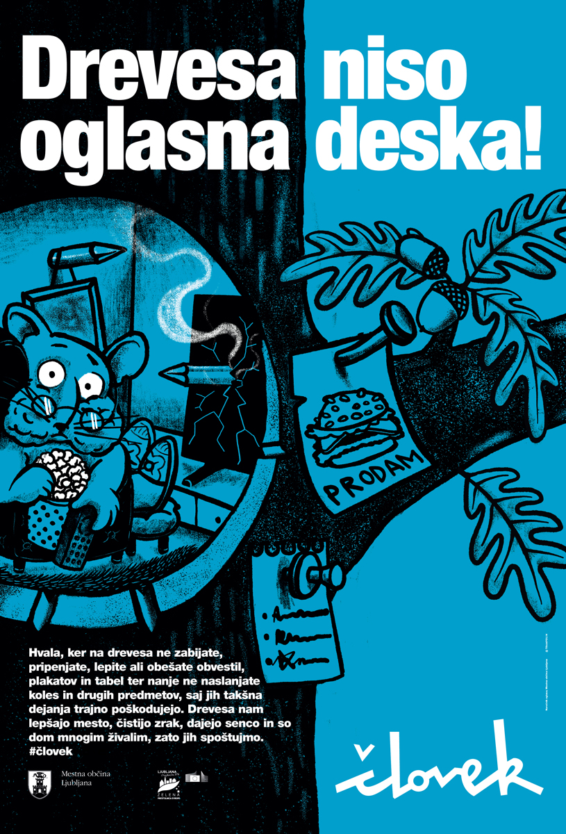 V sklopu akcije Človek, čuvaj svoje mesto smo pripravili obveščevalne table, ki spodbujata pravilno ravnanje v soseskah. S prijaznimi napisi želimo prebivalce mestnih sosesk spodbuditi k večji skrbi za skupno okolje. Table, ki so nastale na pobudo meščank in meščanov, so postale prepoznaven simbol spoštljivega sobivanja v mestu.
