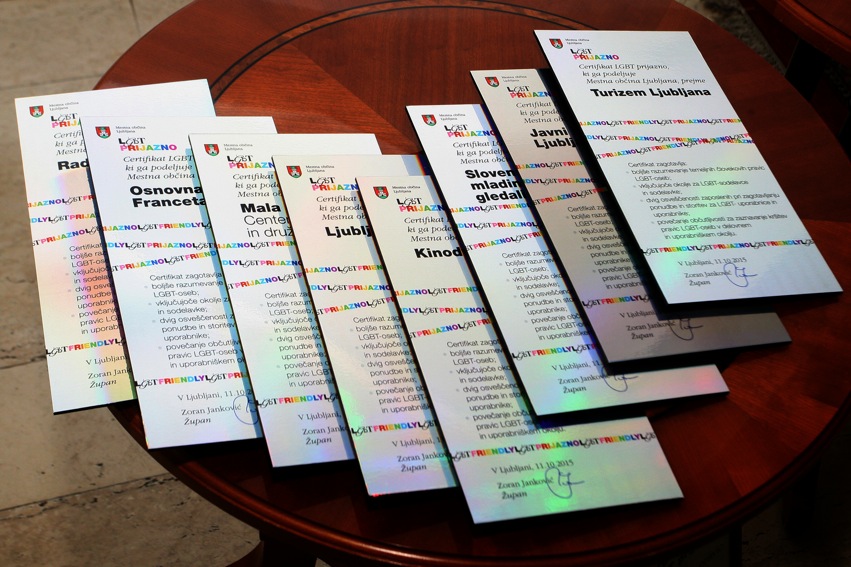 Certifikat LGBT prijazno od vzpostavitve leta 2014 podeljujemo organizacijam, ki se zavzemajo za ozaveščenost o problematiki in stremijo k oblikovanju varnega okolja tudi na delovnem mestu.