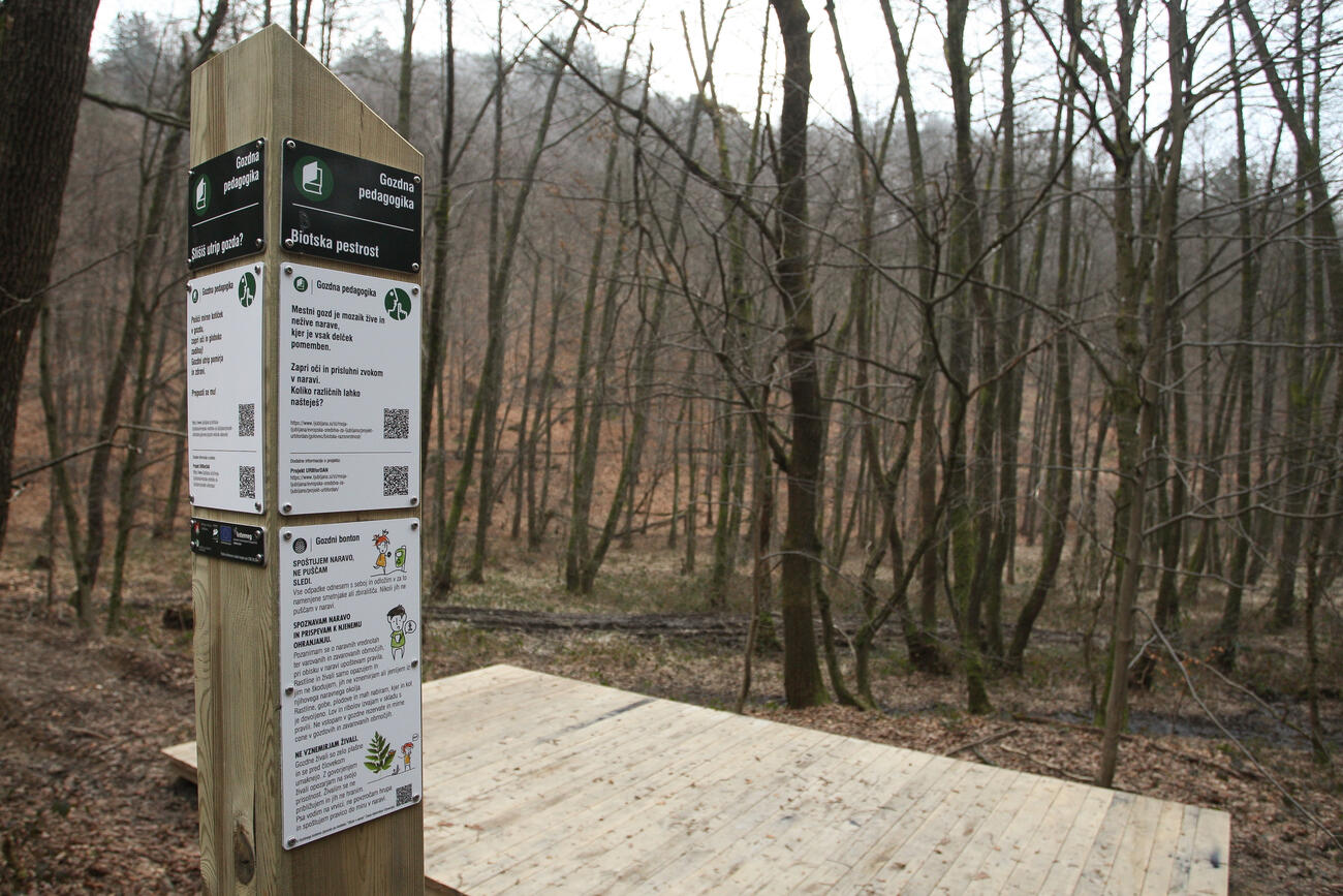 No, morda boste v bližini zaslišali otroški smeh, saj to lokacijo, kjer smo postavili tudi točko gozdne pedagogike, prav radi obiščejo šolarji. Območje prav tako razvijamo kot eno od osmih vstopnih točk v mestni gozd Golovec, ki bo opremljena z informacijskimi tablami, zapornica pa bo preprečevala dostop v gozd z motornimi vozili.