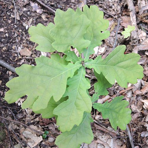Dob je tipičen hrast s pernato krpatimi listi, ki ga od drugih vrst ločimo po popolnoma golih listih z le nekaj mm dolgim pecljem, medtem ko so želodi dolgopecljati. Raste na malo bolj vlažnih mestih vznožja Grajskega griča.