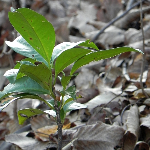Lovorikovec je gojena okrasna rastlina, ki pa jo ptice zaradi drobnih užitnih plodov pogosto raznesejo daleč od nasadov in tako se tudi v gozdovih na Grajskem griču pojavlja precej pogosto. Prepoznamo ga po čvrstih usnjatih vednozelenih listih.