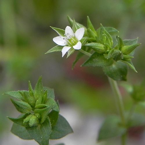 Navadno peščenko poleg zelenic srečamo tudi na travnikih in na ruralnih mestih. Od ostalih klinčnic jo ločimo po drobnih belih cvetovih z enodelnimi venčnimi listi. Plod je drobna, a čvrsta hruškasta glavica, ki se odpira s petimi zobci.