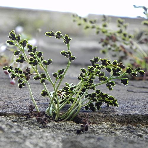 Na Grajskem griču se pozidna rutnica pojavlja predvsem po starih zidovih. To praprot lahko prepoznamo po značilno oblikovanih listih z množico trosišč na spodnji stran.