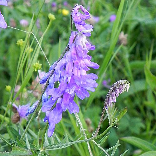 Ptičja grašica je zelnata vzpenjalka, ki se okoliških rastlin oprijemlje z viticami na vrhu listov. Listi so pernato sestavljeni, s številnimi ozkosuličastimi lističi. Gosta mnogocvetna socvetja vijoličastih cvetov so opazna že od daleč.