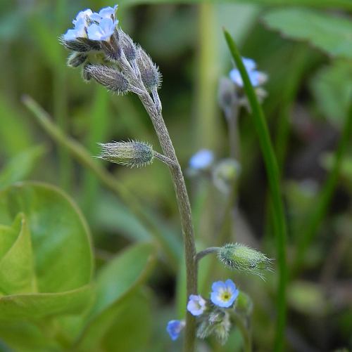Razrasla spominčica je podobna in sorodna njivski spominčici, a večkrat jo najdemo na zmerno suhih travnatih mestih. Peclji cvetov se po cvetenju ne podaljšujejo in so približno tako dolgi kot zrela čaša.