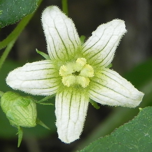 Bluščec je enoletna vzpenjalka s prepoznavnimi dlanastodeljenimi listi in za bučevke tipičnimi belakstimi cvetovi, iz katerih se poleti razvijejo rdeče jagode. Na Grajskem griču se pojavlja tu in tam po grmovju.