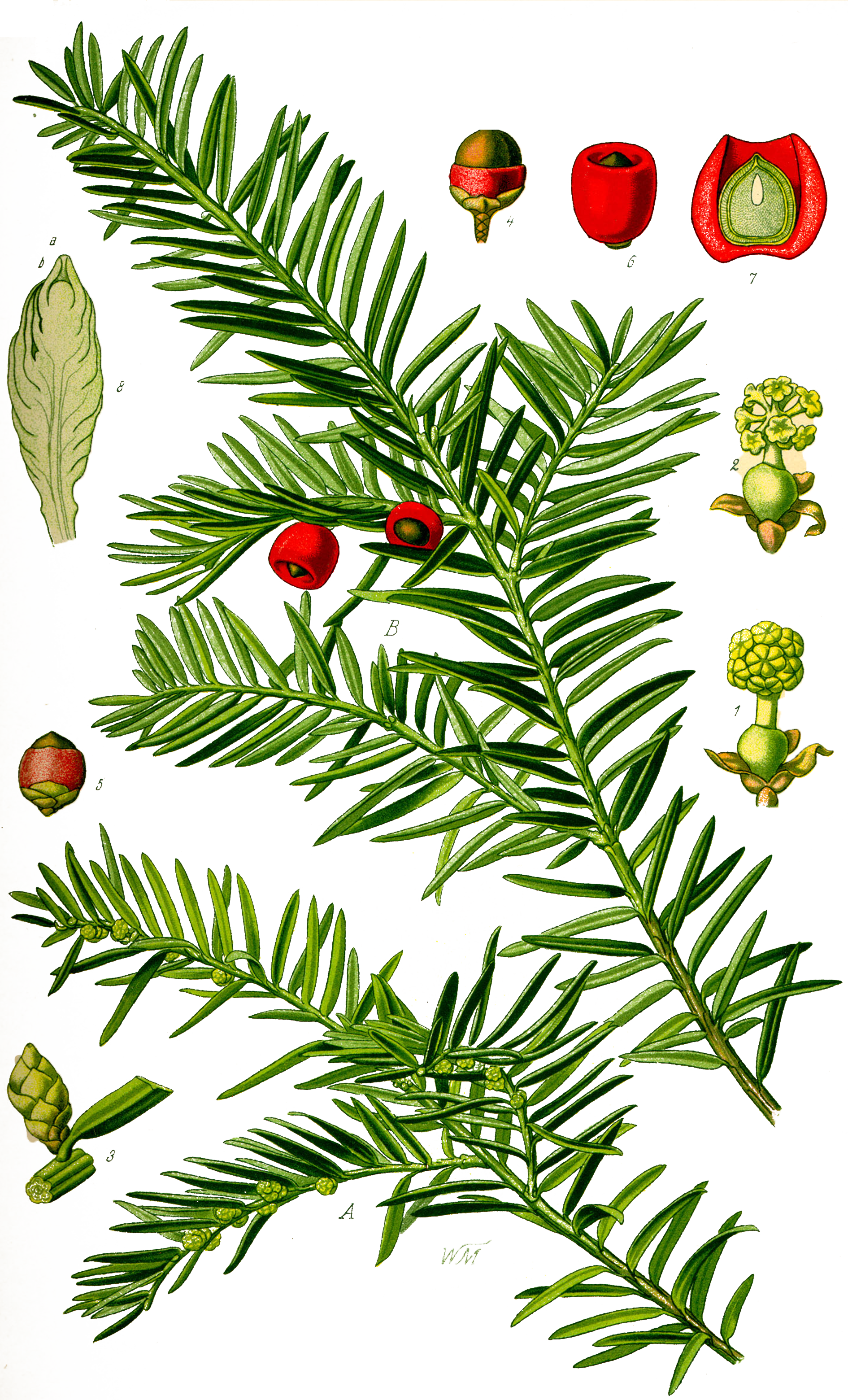Skorja je rdečerjave barve, tanka in se lušči v luskah ali trakovih. Temnozelene bleščeče iglice so ploščate, široke do 2,5 mm in dolge do 3 cm. S spodnje strani so svetlejše barve z dvema svetlima progama listnih rež. Na veji ostanejo od 4 do 5 let. Koreninski sistem je močno razvejan, glavna korenina lahko sega zelo globoko v tla.