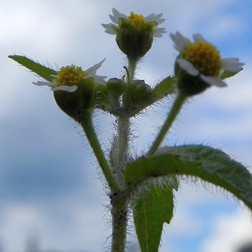 Koški vejicatega rogovilčka po barvi spominjajo na marjetice, a so drobni, z malo kratkimi belimi jezičastimi cvetovi, koškov pecelj pa je štrleče žlezasto dlakav. Ameriška vrsta, ki se je pri nas udomačila v zadnjih 100 letih.