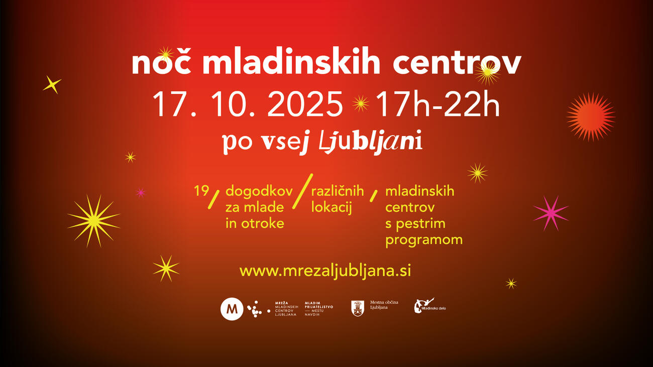 V petek, 17. oktobra 2025, vas med 17. in 21. uro vabimo na Draveljska mlada noč - noč mladinskih centrov, ki je namenjena vsem mladim med 10. in 29. letom starosti. Dobimo se v prostorih zavoda MISSS na Kunaverjeva ulica 2.