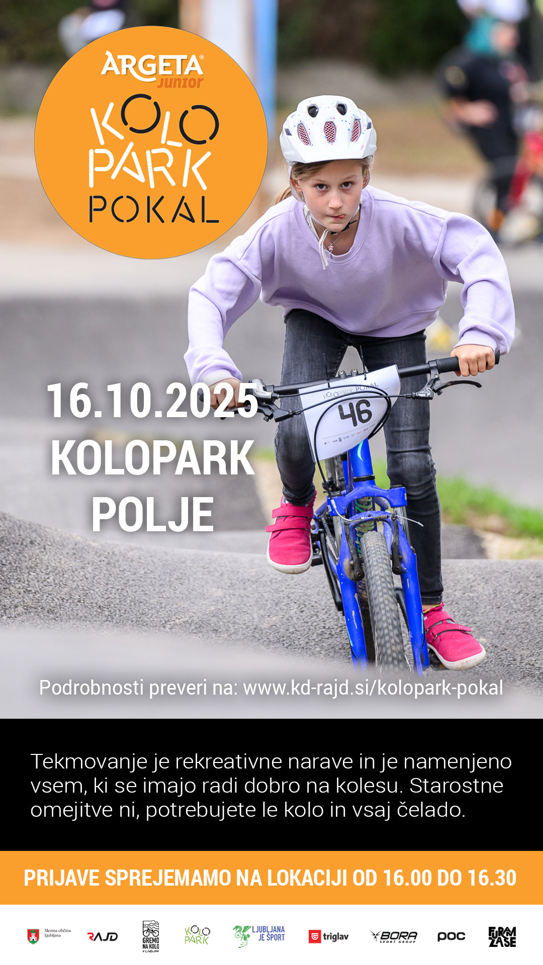 V četrtek, 16. oktobra, bo med 16. in 18. uro potekal Argeta Junior KoloPark Pokal Polje. Gre za zadnjo postajo letošnje serije zabavnega tekmovanja. Serija je že obiskala večino mestnih KoloParkov, zadnjič v sezoni se poženemo čez grbine in bande KoloParka v Polju.