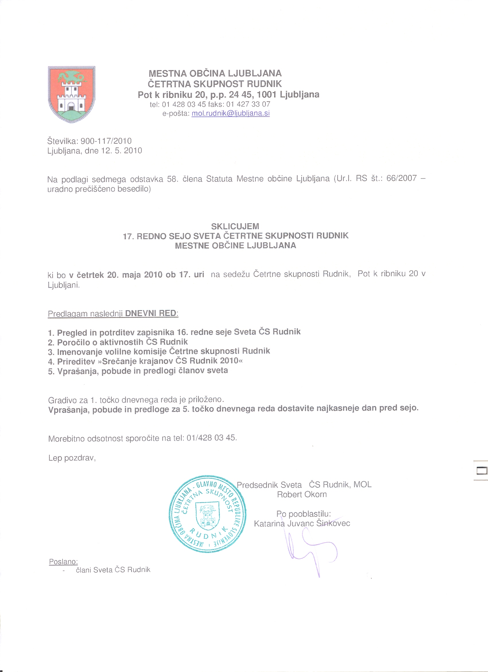 17. redna seja Sveta Četrtne skupnosti Rudnik