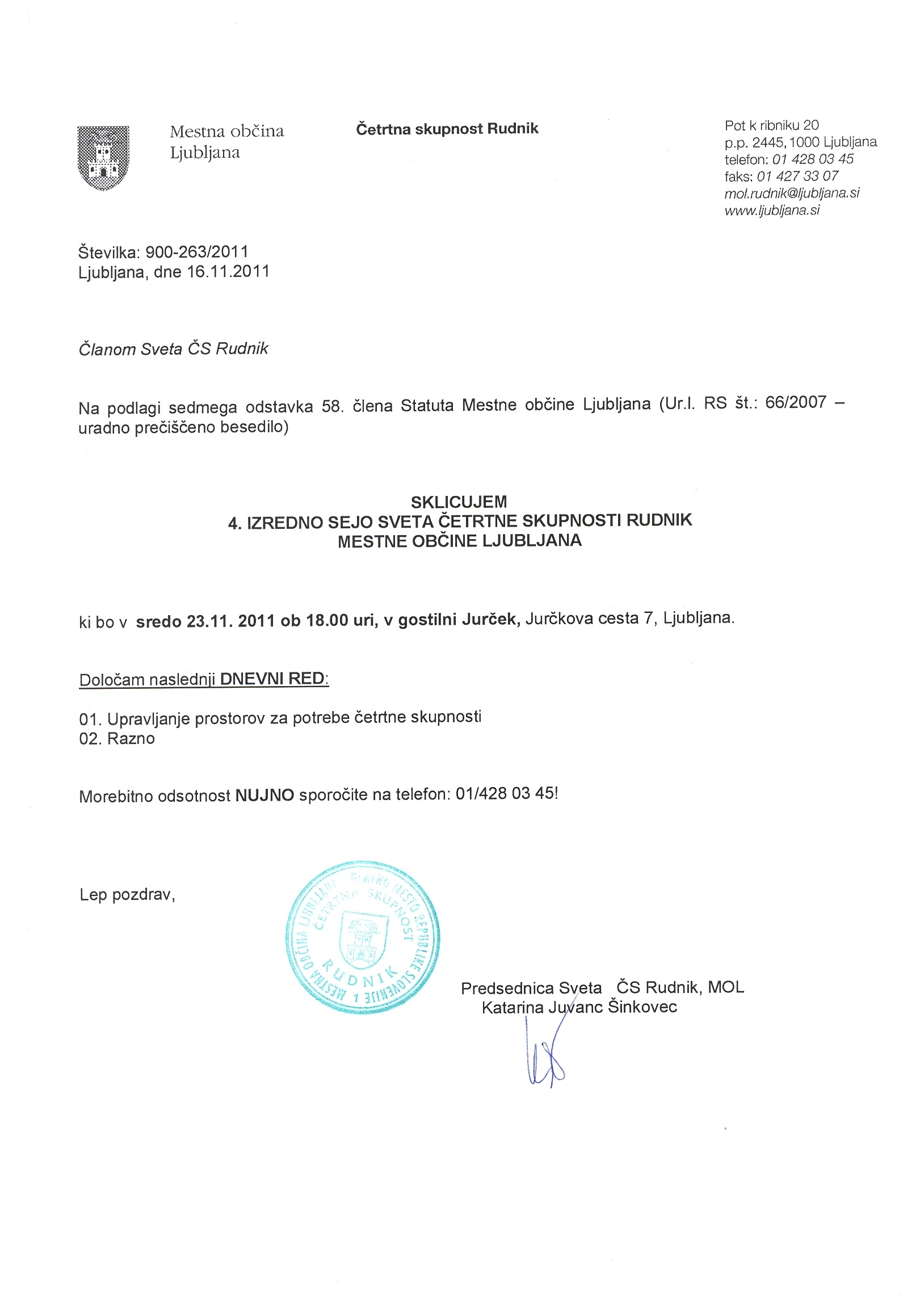 4. izredna seja Sveta Četrtne skupnosti Rudnik