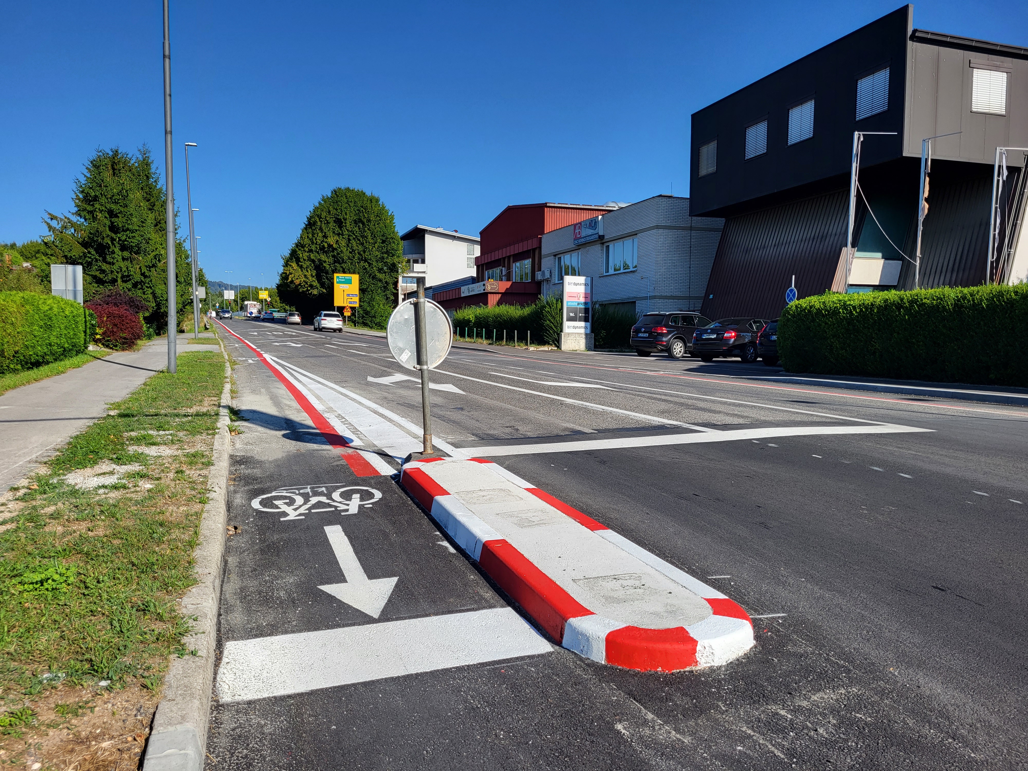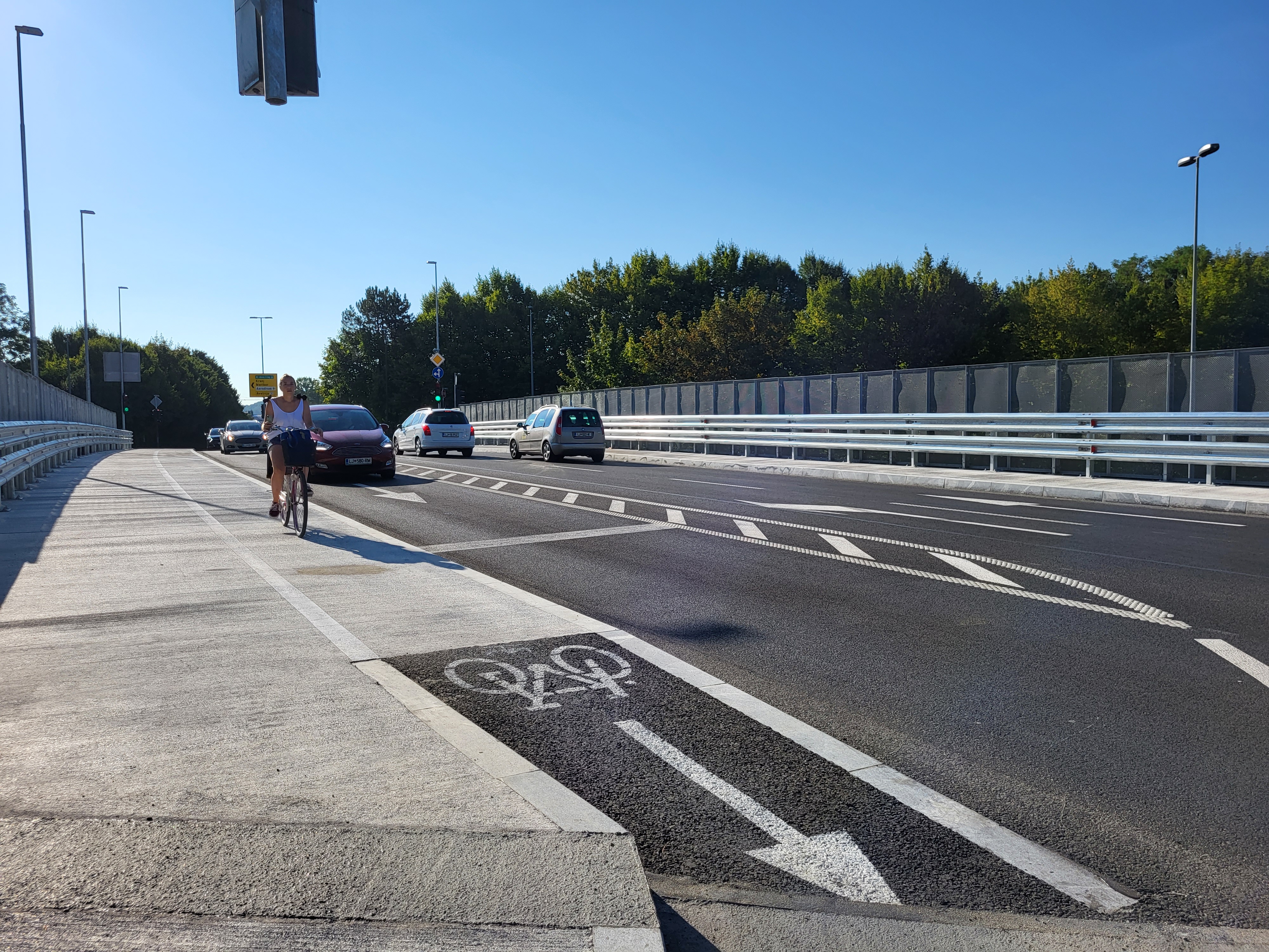 Na nadvozu smo na obeh straneh uredili kolesarske površine in enostranski širok pločnik ter s tem zagotovili zvezno vodenje kolesarjev med obema stranema avtoceste. Na strani proti Kosezam smo kolesarske pasove podaljšali do križišča z Ledarsko ulico, po tej ulici pa bomo v kratkem zarisali še oznake za skupni promet na voznem pasu za motorna vozila in kolesarje (t. i. »sharrow«).