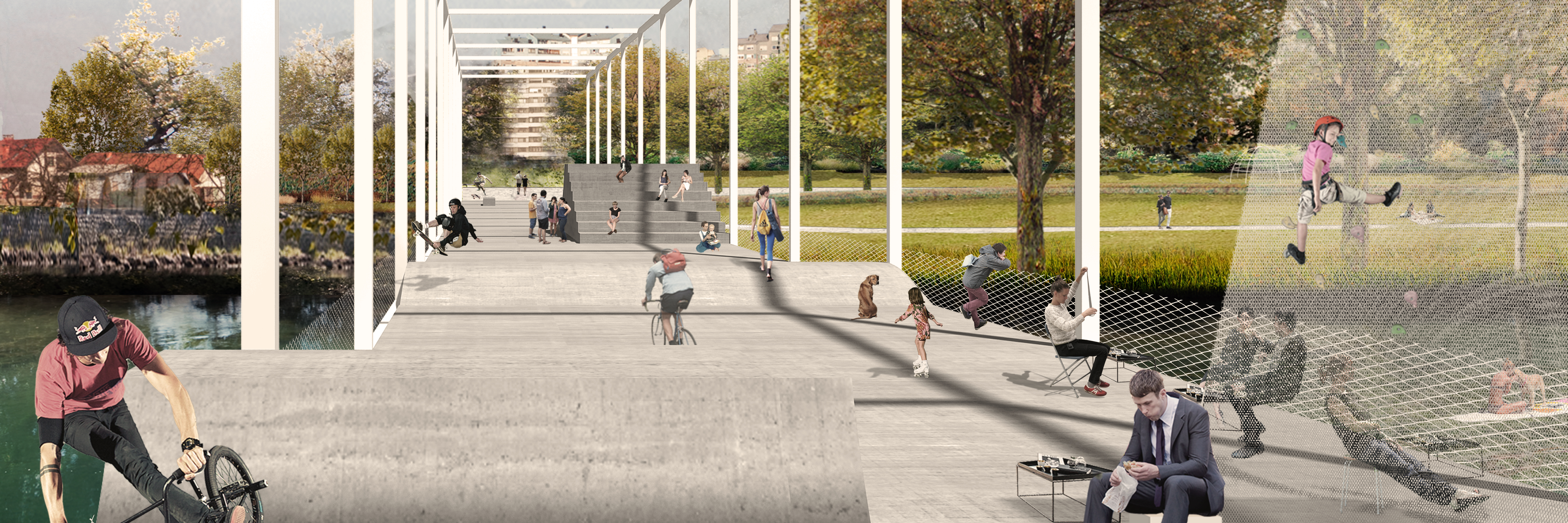 Most bo novi simbol tega predela mesta, ki bo nudil nove skupne vsebine obeh bregov in s tem postal kraj druženja in združevanja prebivalcev obeh strani, reke in mesta. S programi kot so čitalnica Knjižnice pod krošnjami, s plezalno steno, nagubano mostno površino, ki služi kot skate park ali pa prireditveni avditorij, bo most lahko postal nova mestna razglednica. Živ trg na vodi, ki z vsebinami obogati in poveže obe parkovno urejeni brežini. Cilj je, da most postane za Ljubljano tisti prostor nad reko, kot bi naj bil Plečnikov Mesarski most oziroma kar so nekateri znameniti primeri: Palladijev Ponte dei Alpini v Bassanu, Kappellbruecke v Luzernu, Rialto v Benetkah, firenški Ponte vecchio in drugi tovrstni mostovi.