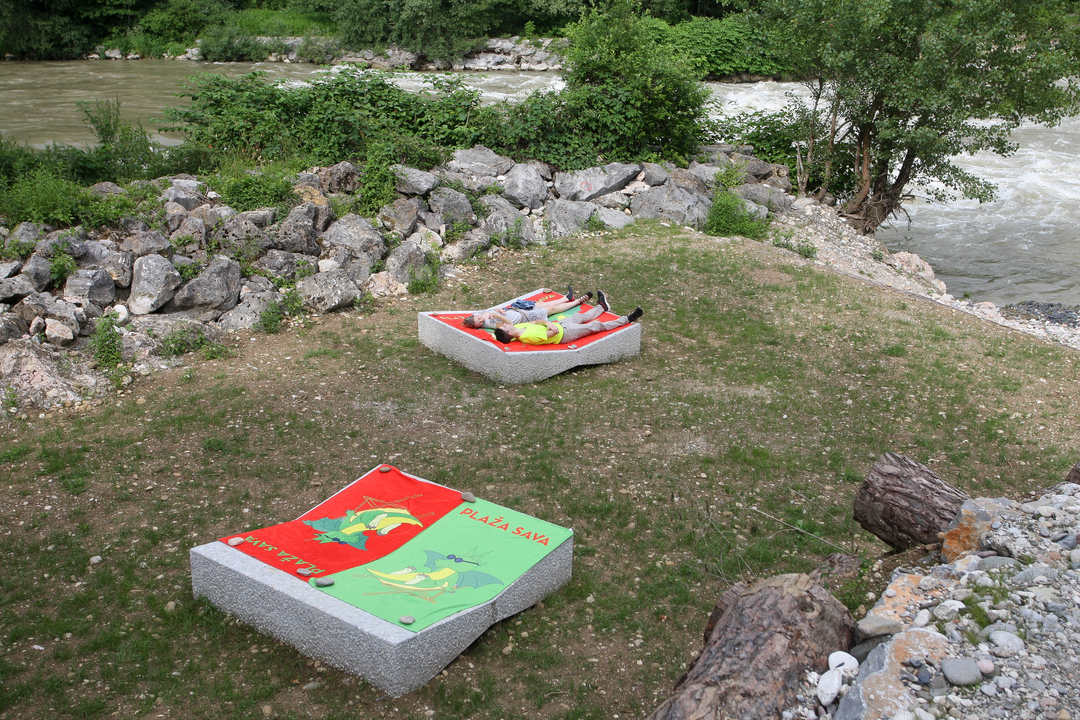 Reka Sava je pozimi spodjedla poti in brežine, premaknila betonske ploščadi in nanesla ogromno ostrega kamenja, zato smo na novo utrdili brežine, nanesli prod, ojačali breg ter obnovili vse betonske ploščadi za sončenje. Poleg tega smo zdaj uredili še dostop do reke.