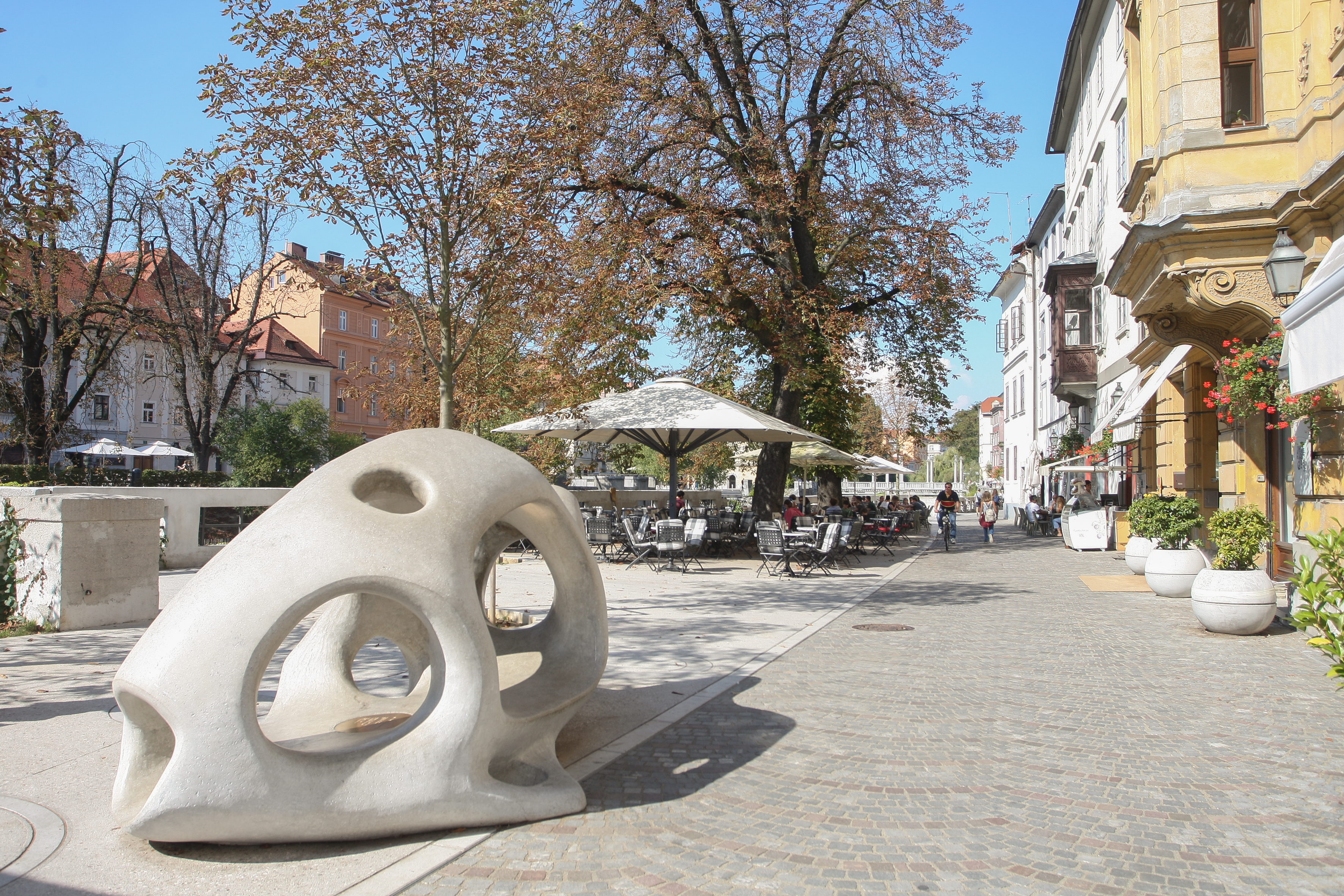 Obstoječ betonski robnik smo nadomestili z robnikom iz umetnega kamna s taktilno oznako za slepe in slabovidne v širini 30cm. S tem je sklenjena pot slepih in slabovidnih, ki poteka po Čopovi ulici, čez Tromostovje, po Cankarjevem nabrežju, preko Čevljarskega mostu in naprej po Bregu.