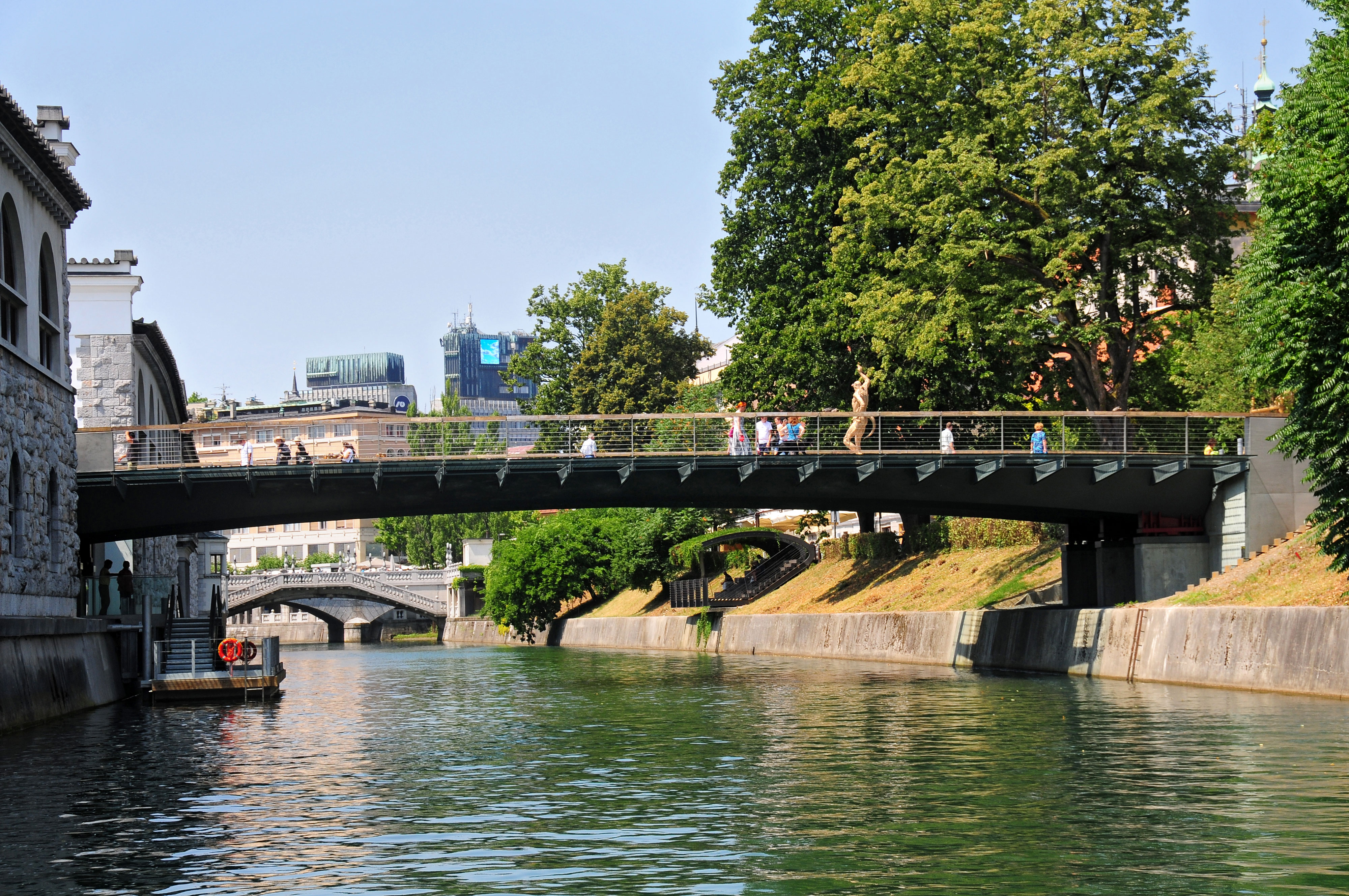 S prenovo nabrežij Ljubljanice in postavitvijo novih mostov smo dodatno oživili Ljubljanico v delu, ki teče skozi mestno središče. Tako je postala priljubljena tudi plovba s turističnimi ladjicami. Na ladjice se je možno vkrcati na rečnih pristanih pod Mesarskim mostom, na Ribjem trgu, na Dvornem trgu, na Špici in na Gallusovem nabrežju.