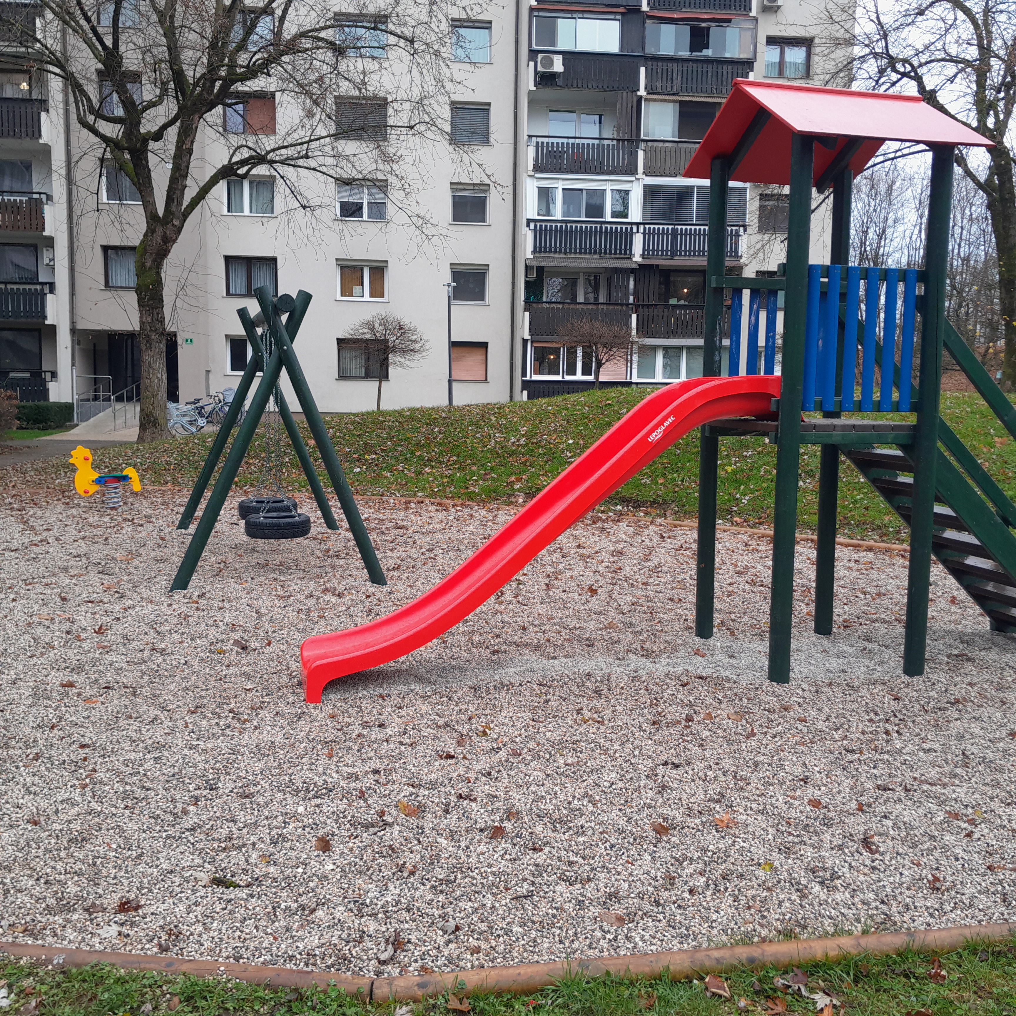 Z novimi igrali smo opremili otroško igrišče Beblerjev trg 11-14.