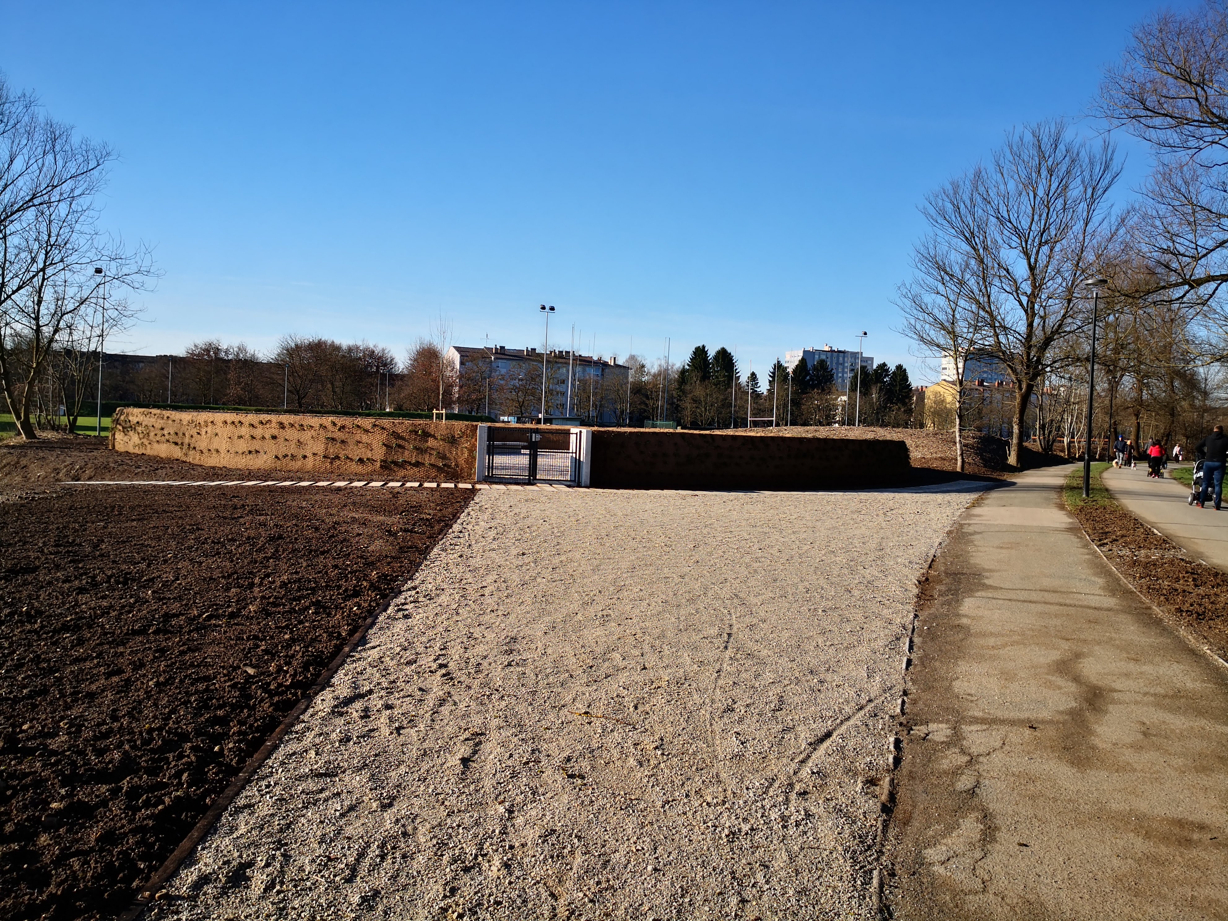 Na zelenici ob Poti spominov in tovarištva med Beblerjevim trgom 6 in Ulico Gradnikove brigade 4-8 smo uredili pasji park v velikosti 1.000 kvadratnih metrov.