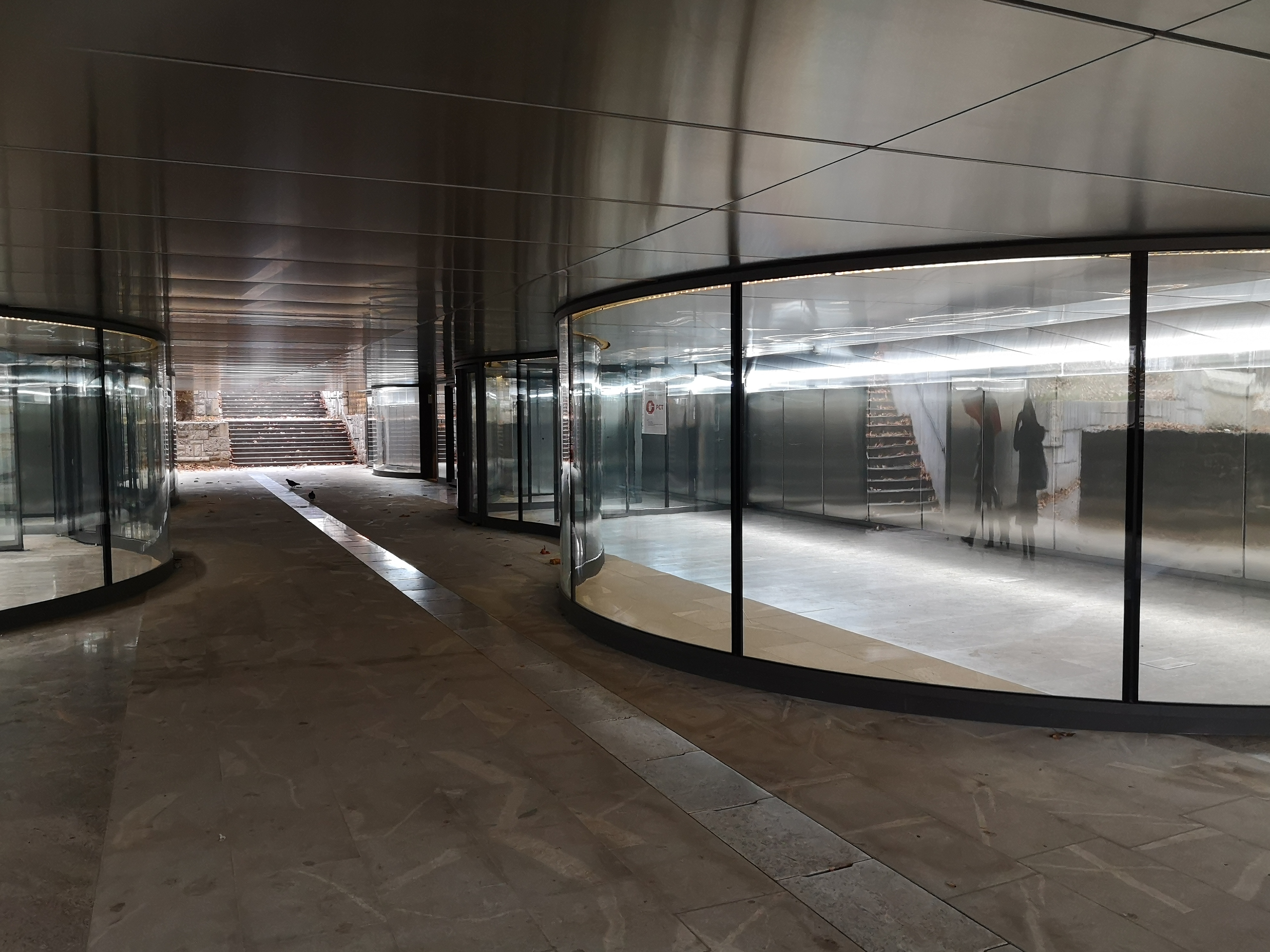Obnovili in zamenjali smo dotrajane betonske in kamnite detajle ob vhodih v podhod in v celoti zamenjali medeninaste ograje.