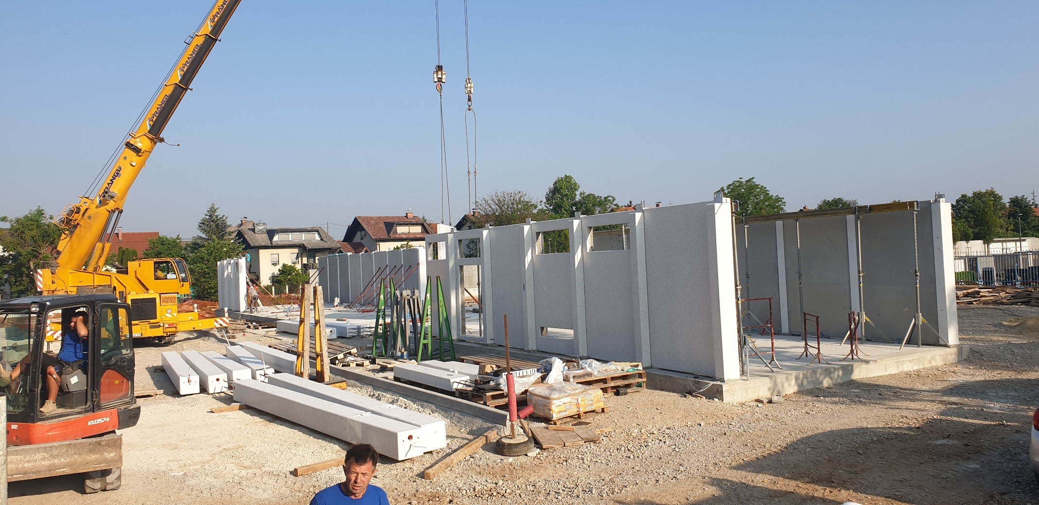 Na južnem delu območja smo zgradili poslovilni objekt (320 m2) z nadstrešnico (215 m2),dve mrliški vežici in dva prostora za svojce.
