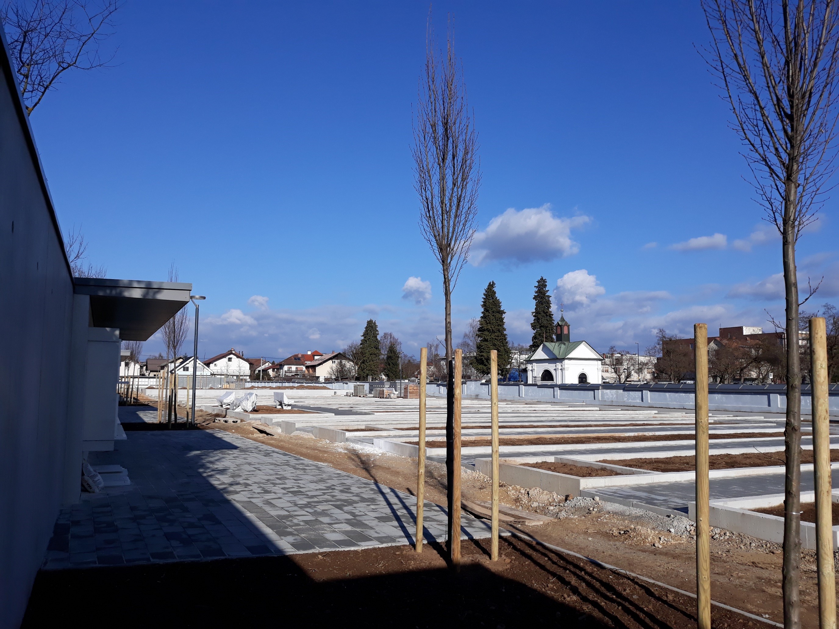 V sklopu širitve smo zgradili nov poslovilni objekt, ploščad, uredili park in z novimi površinami za klasični in talni žarni pokop, kolumbarijem ter prostorom za raztros pepela zagotovili 1.560 novih pokopnih mest.