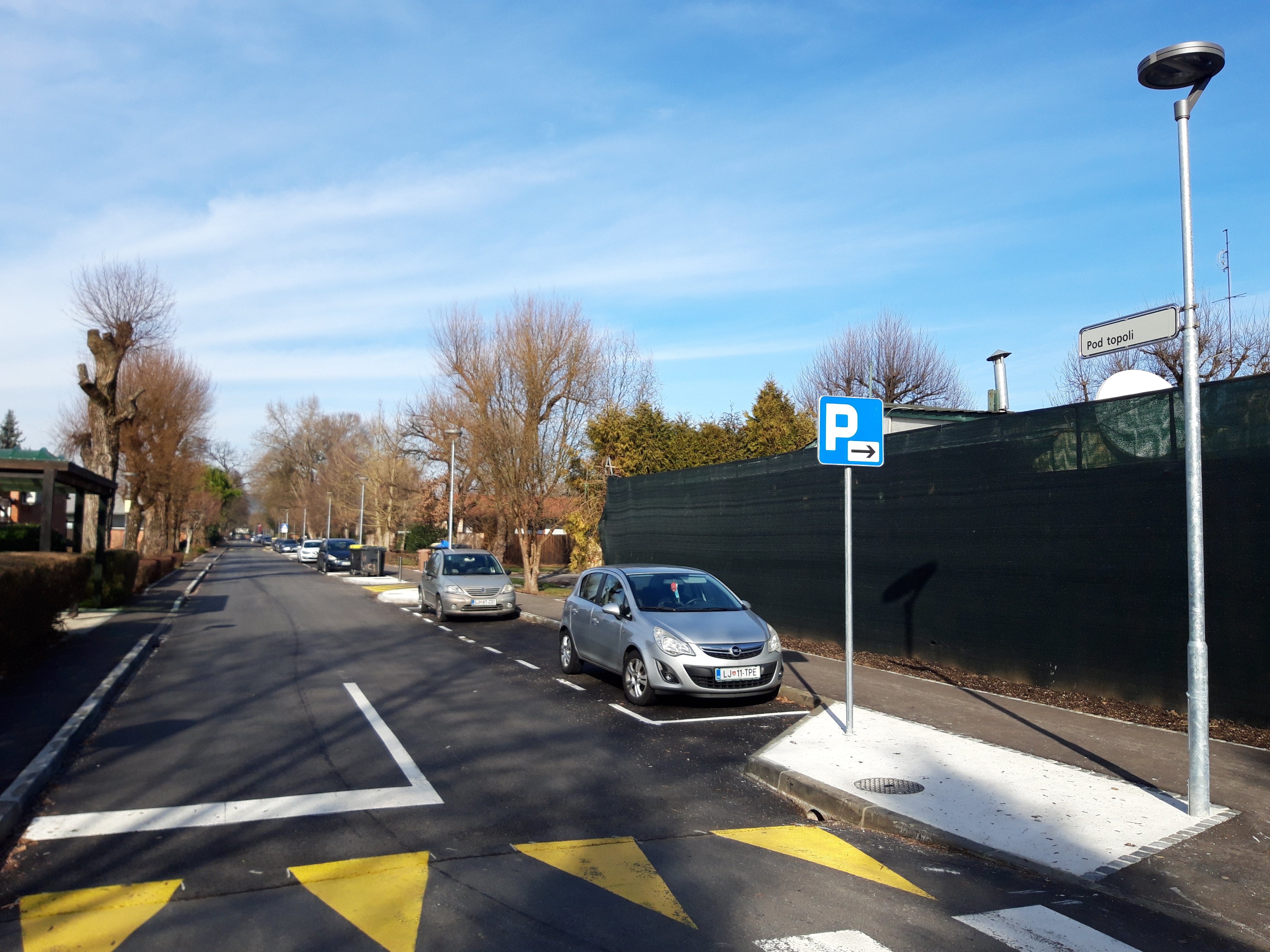 V okviru projekta smo uredili tudi mesta za zabojnike za odpadke in vzdolžna parkirna mesta. S tem smo izboljšali prejšnje stanje, ko so bili avtomobili parkirani na cesti pod kotom in so zasedali več prostora.