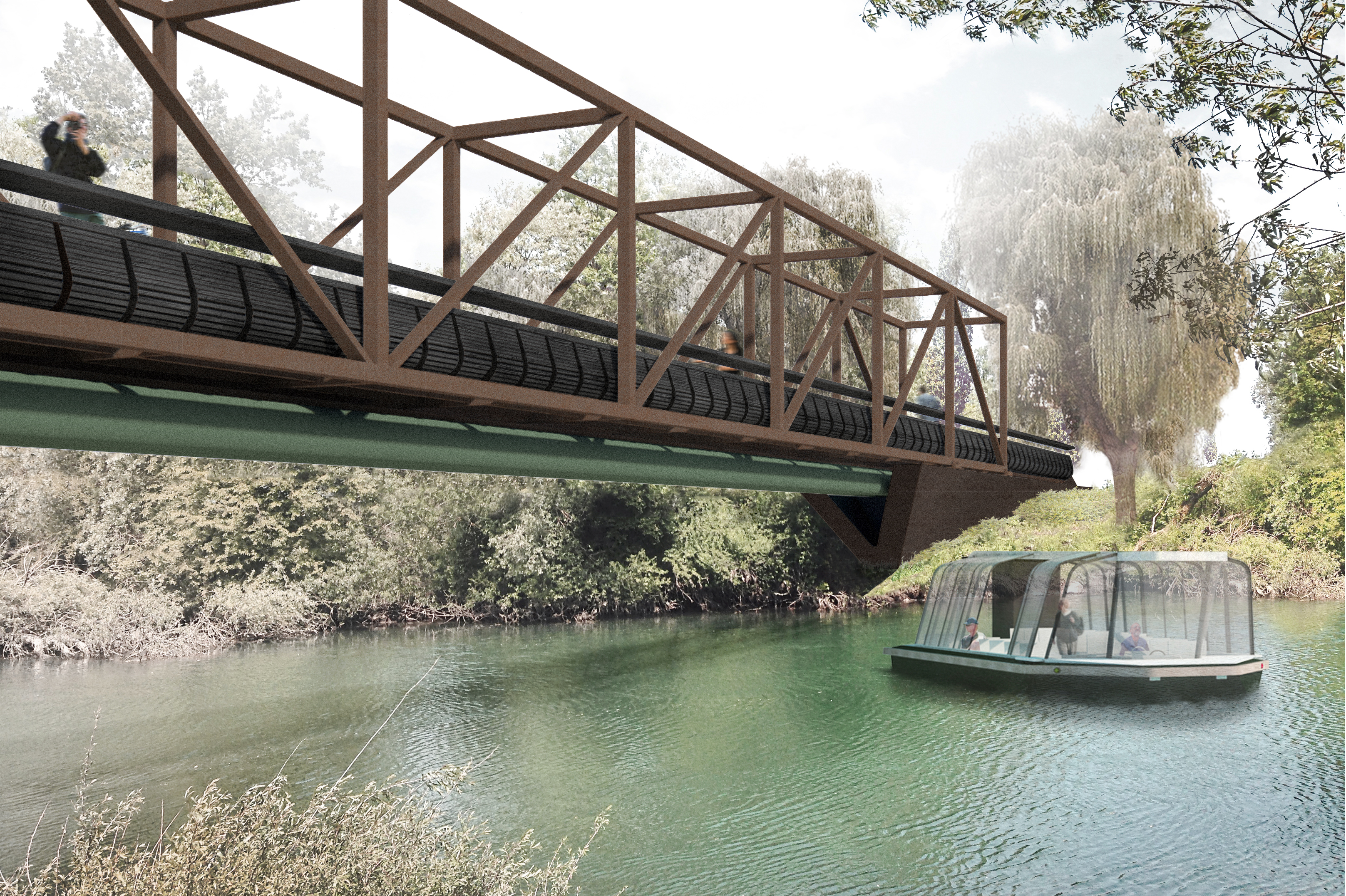 Uredili smo ga na obstoječi konstrukciji vodovoda Ljubljana-Brest v Lipah pri Črni vasi, ki je bila postavljena konec 80. let prejšnjega stoletja za napeljavo pitne vode čez Ljubljanico. Zaradi slabega stanja in dotrajanosti je bila stara konstrukcija potrebna obnove ter zamenjave vodovodnih cevi. Obnovo smo zasnovali tako, da most zdaj hkrati nosi infrastrukturne cevi in omogoča prehod za pešce in kolesarje.